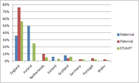 | DNA Regional Origins | Stuart's Father (Sam) | Stuart's Mother (Kathleen) | Stuart's DNA by Region